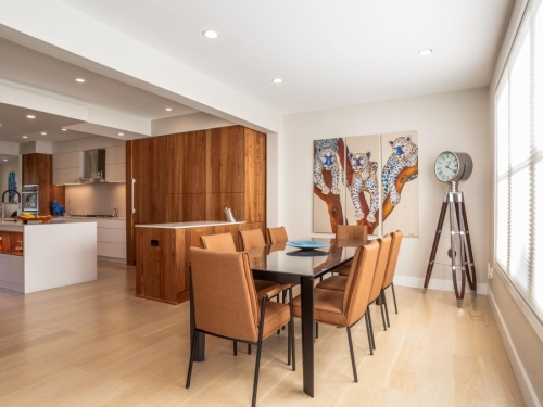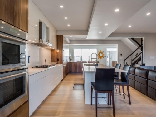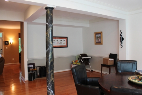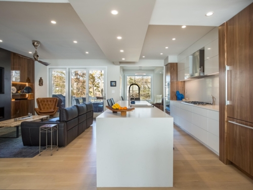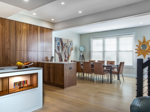 Having made the decision to downsize, this couple bought a beautiful lakefront townhome in Reston. However, the existing layout and finishes made the first floor feel dark, small and closed-in. Preferring a contemporary look and a more open concept, they were ready to make the changes needed to make the home their own and better reflect their design aesthetic.Â