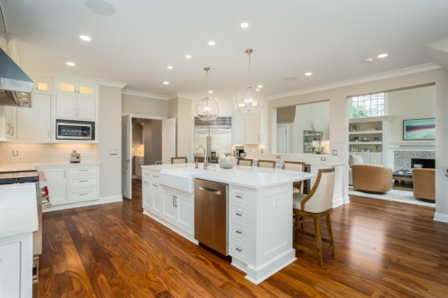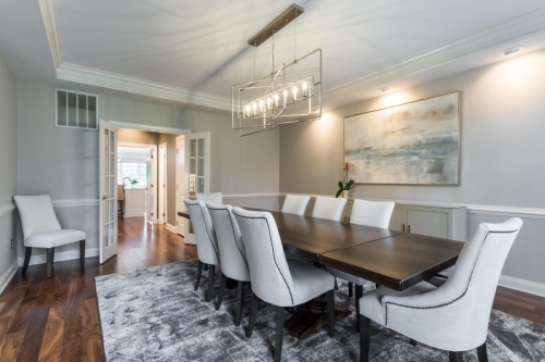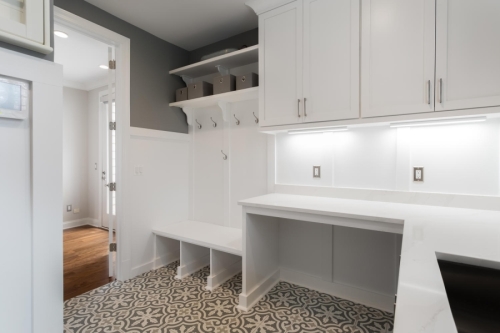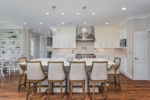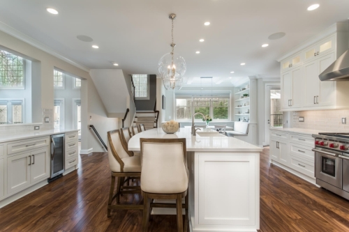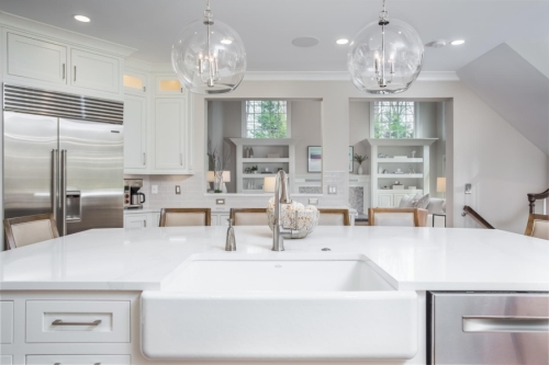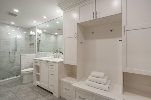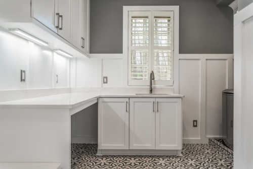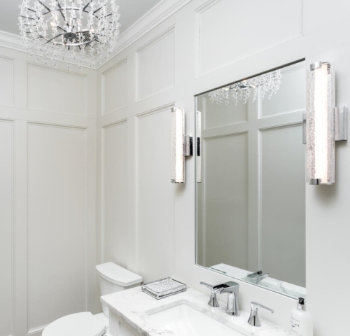 With a grown family, our clients were ready for a change. They wanted to update their home with the goal of creating family friendly spaces with lots of entertainment room for visits from the kids and grandkids! This whole home remodel included the Kitchen, Laundry/Mudroom, Great Room, Powder Room, Basement, Guest Bathroom and a number of other room transformations.