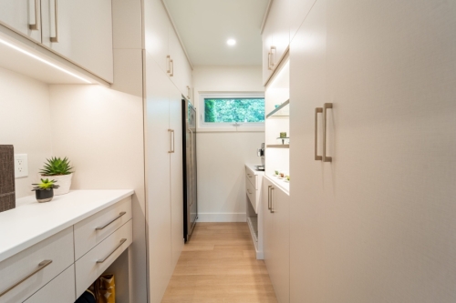 No space was left untouched and no detail overlooked: as the owners of their own home organization & floor coating solution business, our clients turned the Pantry into a functional and stylish space, complete with a secret entrance for the family cats to enter via the new Dining Room for access to their food!