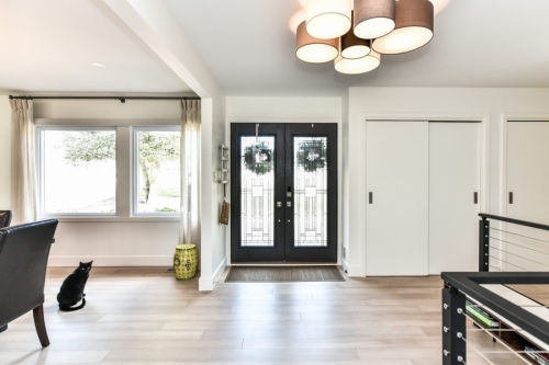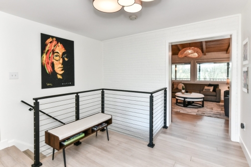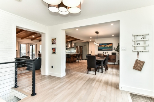 The entrance to the home also got a makeover. It is now open and inviting with modern cable railing and feels much brighter thanks to a larger entry to the new Dining Room. It also provides a line of sight into the Kitchen/Family Room.