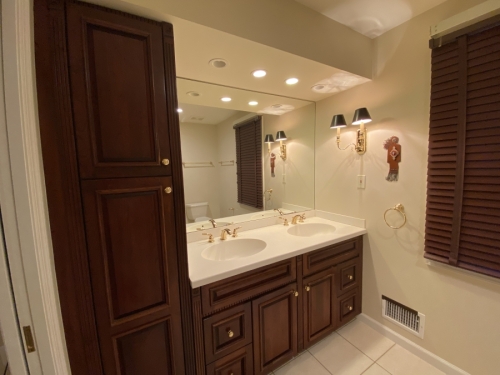 We remodeled the upper level of this home including remodeling the Primary Bathroom and a Hall Bathroom. We also completed a number of other updates to the second level (not shown) in the bedrooms. This was in addition to completing a full main level remodel of this lovely home (see our Project Gallery).